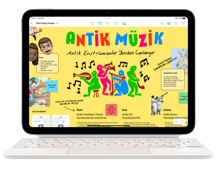 Apple Pencil ile not alın, çizim ve resim yapın. Magic Keyboard Folio’nun çok yönlü iki parçalı tasarımıyla rahatça yazın, trackpad’i kullanın ve sevdiğiniz içeriklerin keyfini çıkarın.2 İster tanıdık klavye kestirmelerini isterseniz herhangi bir yerine tıklanabilen trackpad’i kullanın. Ve harika bir yazma deneyimiyle tanışın.