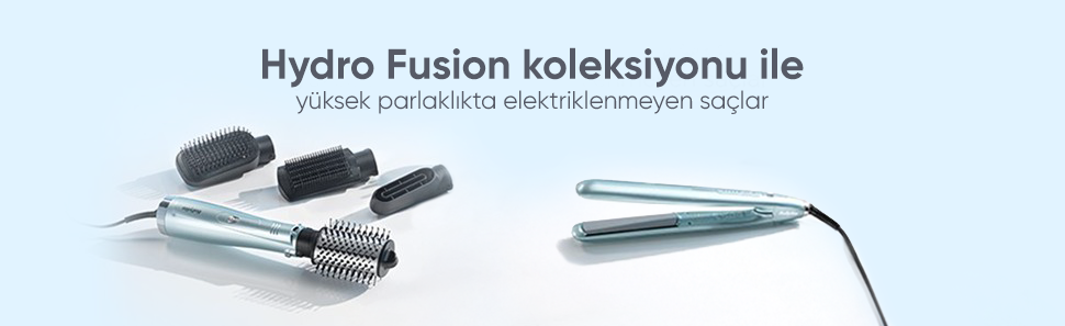 BaByliss Hydro-Fusion Hava Üflemeli Saç Şekillendirici Seti, değiştirilebilir başlıkları sayesinde saçlarınızı hem kurutur hem de şekillendirir. Sahip olduğu Gelişmiş Plazma Teknolojisi ile pürüzsüz, parlak ve elektriklenmeyen sonuçlar sağlar.