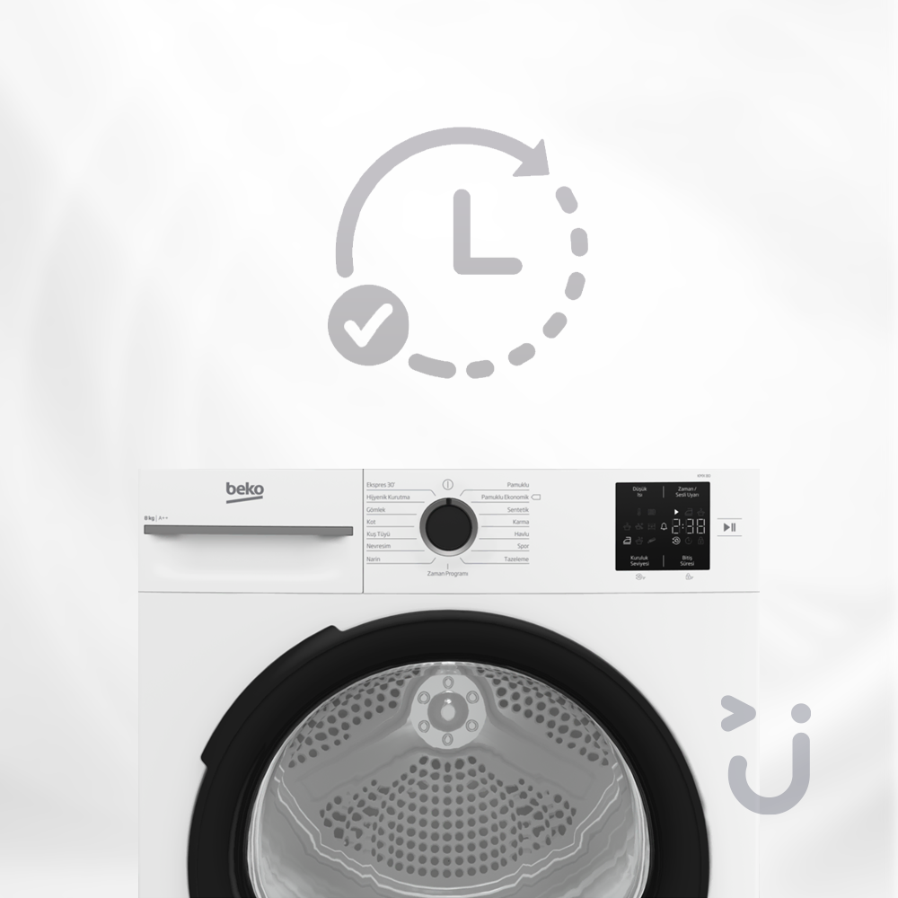 Beko KMX 80’in kullanımı kolaydır. Zaman ayarlı kurutma ve program seçenekleri ile kullanıcıya tam kontrol sunar. Dijital kontrol paneli sayesinde istediğiniz kurutma seviyesini pratik bir şekilde ayarlayabilirsiniz. Ayrıca birçok farklı kurutma seçeneğine erişim sağlayarak, her tür kumaş için uygun programı seçme özgürlüğüne sahip olabilirsiniz. Programları önceden ayarlamak için gecikmeli başlatma özelliğini kullanabilirsiniz. Bu işlevsellik, makineyi dilediğiniz zaman çalıştırabilmenizi sağlar. Kullanıcı dostu arayüzü sayesinde karmaşık ayarlar ya da zaman kaybı yaşamadan hızlıca istenilen ayarları yapabilirsiniz. Gecikmeli başlatma, yoğun zamanlarda size esneklik tanır. Bu özellikler sayesinde kurutma işlemi sırasında müdahale etmenize gerek kalmadan makineyi istediğiniz zaman diliminde çalışması için önceden programlayabilirsiniz.
