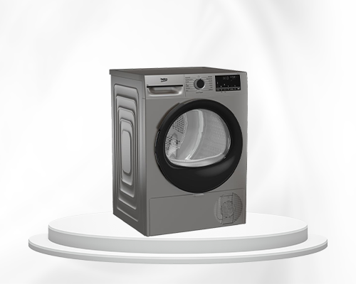 Gri renkli beko kurutma makinesinin tasarımı; hem beyaz dokulu hem gri hem de siyah tonlu modern banyo alanlarına uyumlu bir görüntü oluşturur. Hem işlevselliği hem de estetik tasarımıyla öne çıkan bu model fonksiyonel bir cihaz olarak yaşam alanlarını tamamlar.