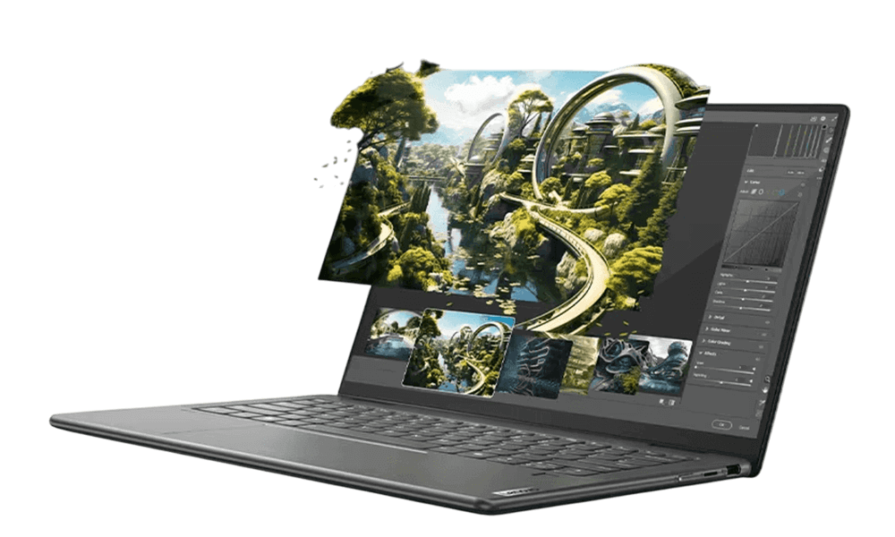 Yoga 7i 2'si 1 arada Gen 9 dizüstü bilgisayarın göz kamaştırıcı ekranı ve Dolby Vision® özelliği ile en derin siyahların, en zengin renklerin ve en akıcı aksiyonların keyfini çıkarın. 10 noktalı çoklu dokunmatik cam panel aracılığıyla cihazınızla kolayca etkileşim kurun, ince çerçevesi ve geniş ekranı sayesinde gelişmiş bir izleme deneyimi yaşayarak başyapıtınızı tüm ihtişamıyla görmenize olanak tanıyın. Her sahne, gerçekçi gölgeler, net renkler ve akıcı hareketlerle sinematik görsel bir şölene dönüşsün. Yerleşik uzamsal Dolby Atmos® ile, sesler etrafınızda aksın.