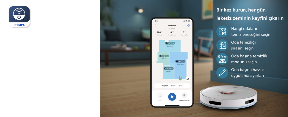 *3 - Süpürme ve silme modunda en düşük emiş gücü ve paspas ıslaklığı ayarıyla test edilmiştir.