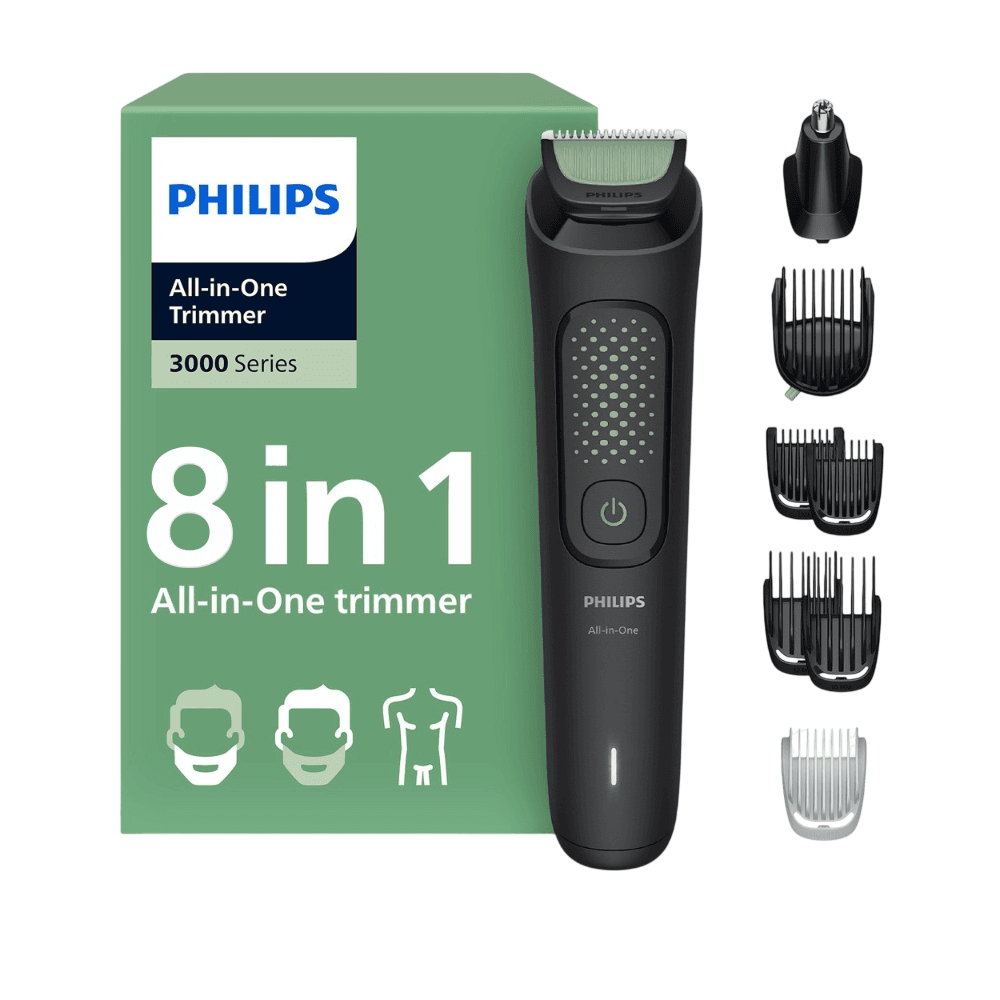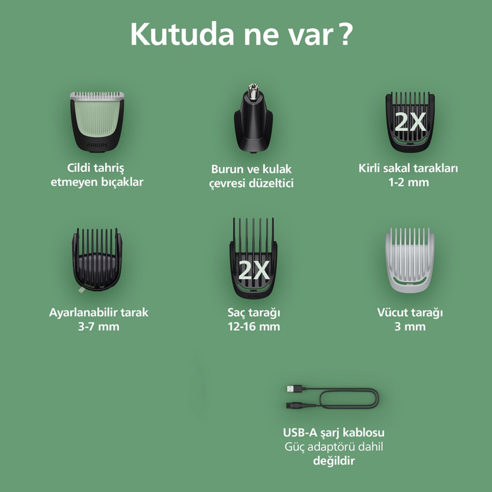 Erkek bakım setimiz, sakalınızı kısaltmanız ve şekillendirmeniz, saçınızı kısaltmanız ve vücut bakımınızı yapmanız için 8 farklı başlıkla birlikte gelir; böylece kişisel bakım ihtiyaçlarınızın tümünü kolayca karşılar.