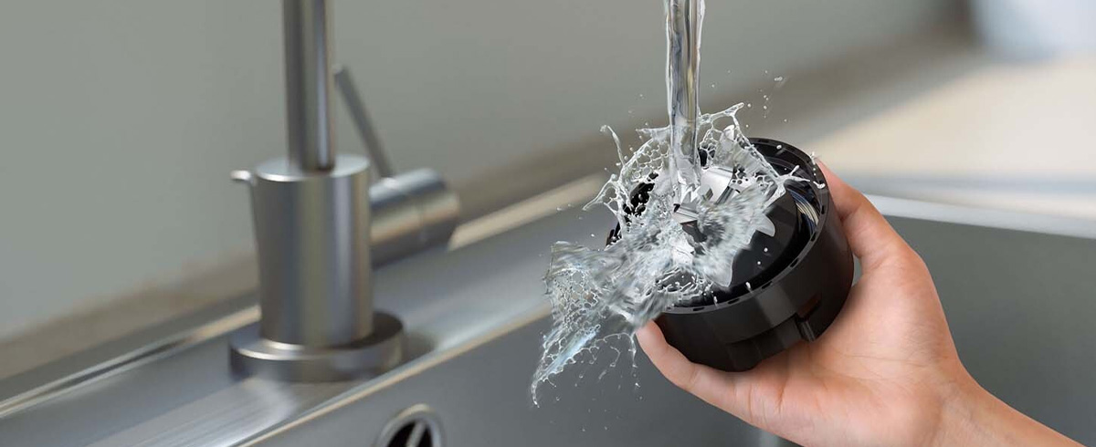 Bıçak ünitesi çevrilip çıkarılarak musluğun altında veya bulaşık makinesinde yıkanabilir.