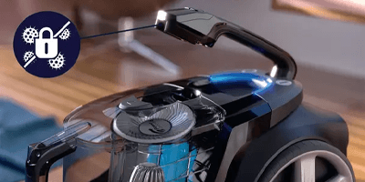 Alerji Kilidi sistemi, çalışmadan önce toz haznesinin tamamen kapalı olduğundan emin olmak üzere bir sensör kullanır, böylece ultra hijyenik bir ortam için tozu ve alerjenleri hapseder.