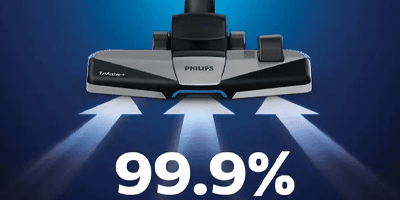 TriActive+ başlık ve ekstrem emiş gücü, ince tozların %99,9'unun** süpürülmesini sağlar.