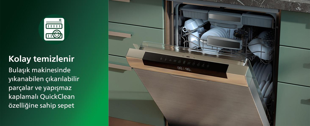 Kolay temizlik için yapışmaz kaplamaya sahip QuickClean sepet ile tüm çıkarılabilir parçalar bulaşık makinesinde yıkanabilir. Hava ile kızartma, evinizi geleneksel kızartma kokusundan kurtarır.