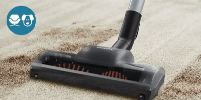 SuperTurbo fırça, başlığın içinde dönerek evcil hayvan tüylerini, tüy yumaklarını ve hatta en küçük toz parçacıklarını da kolaylıkla toplayarak halıları derinlemesine temizler ve daha iyi temizlik performansı sunar. Evcil hayvan sahipleri için idealdir.