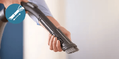 Tutma yerine yerleştirilen toz fırçası aleti mobilyalarınız, düz yüzeyler ve döşemeler için her zaman kullanıma hazırdır.