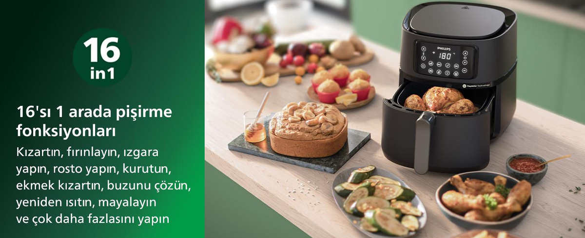 1,4Kg kapasiteli sepet, 7,2L hazne ile birlikte çeşitli yemekler pişirmenize yardımcı olur. Aileniz ve arkadaşlarınız için tek seferde 6 porsiyona kadar yemek hazırlamanızı sağlar.