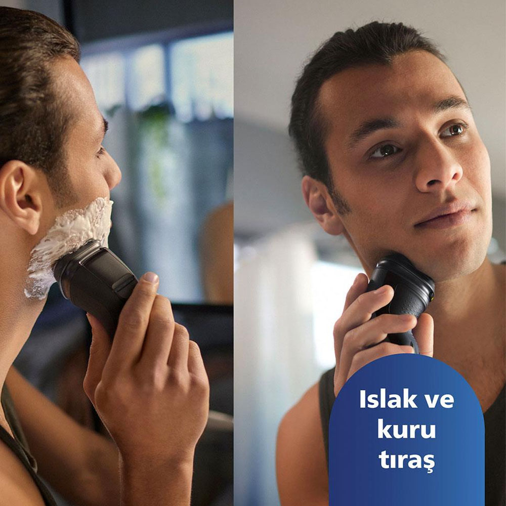 Rahat, kuru tıraşı tercih edin veya duştayken bile ferahlatıcı ıslak bir tıraş için en sevdiğiniz köpük veya jelle birlikte kullanın. Suyun altında durulayın veya duşta tıraş olun. IPX7 su geçirmezlik derecesi sayesinde 30 dakika boyunca bir metre suya daldırılabilir.