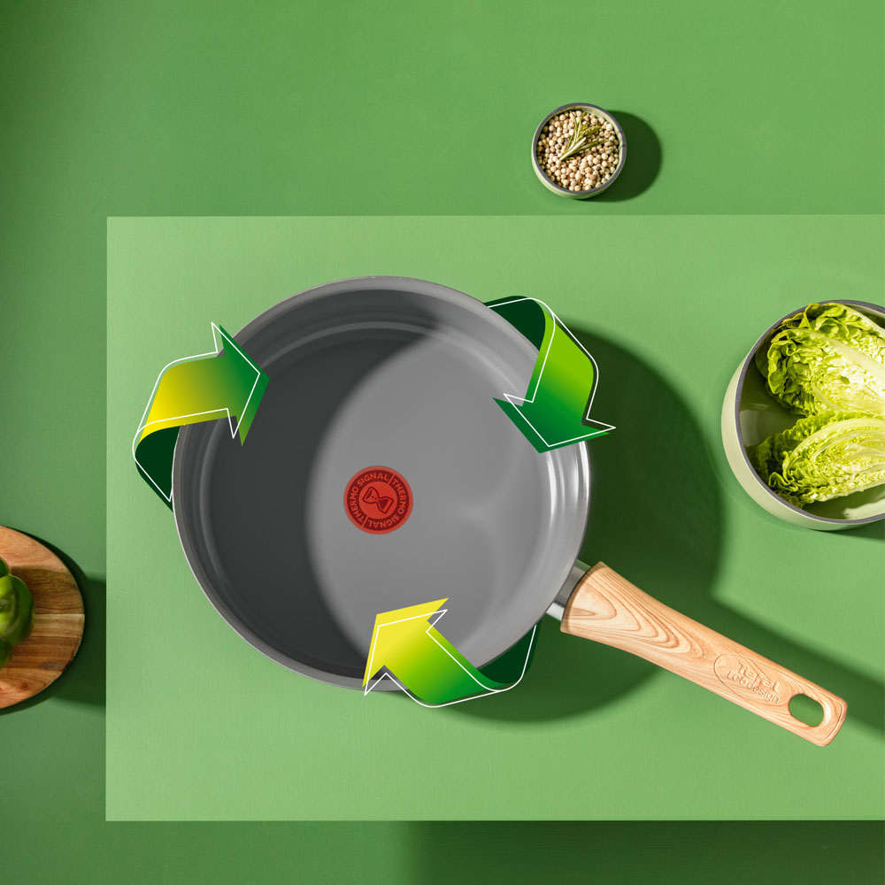 Doğal minerallerle zenginleştirilmiş Tefal Mineralia+ yapışmaz kaplama, her gün kolay ve az yağlı pişirme için dayanıklı bir yapışmaz performans sunar.