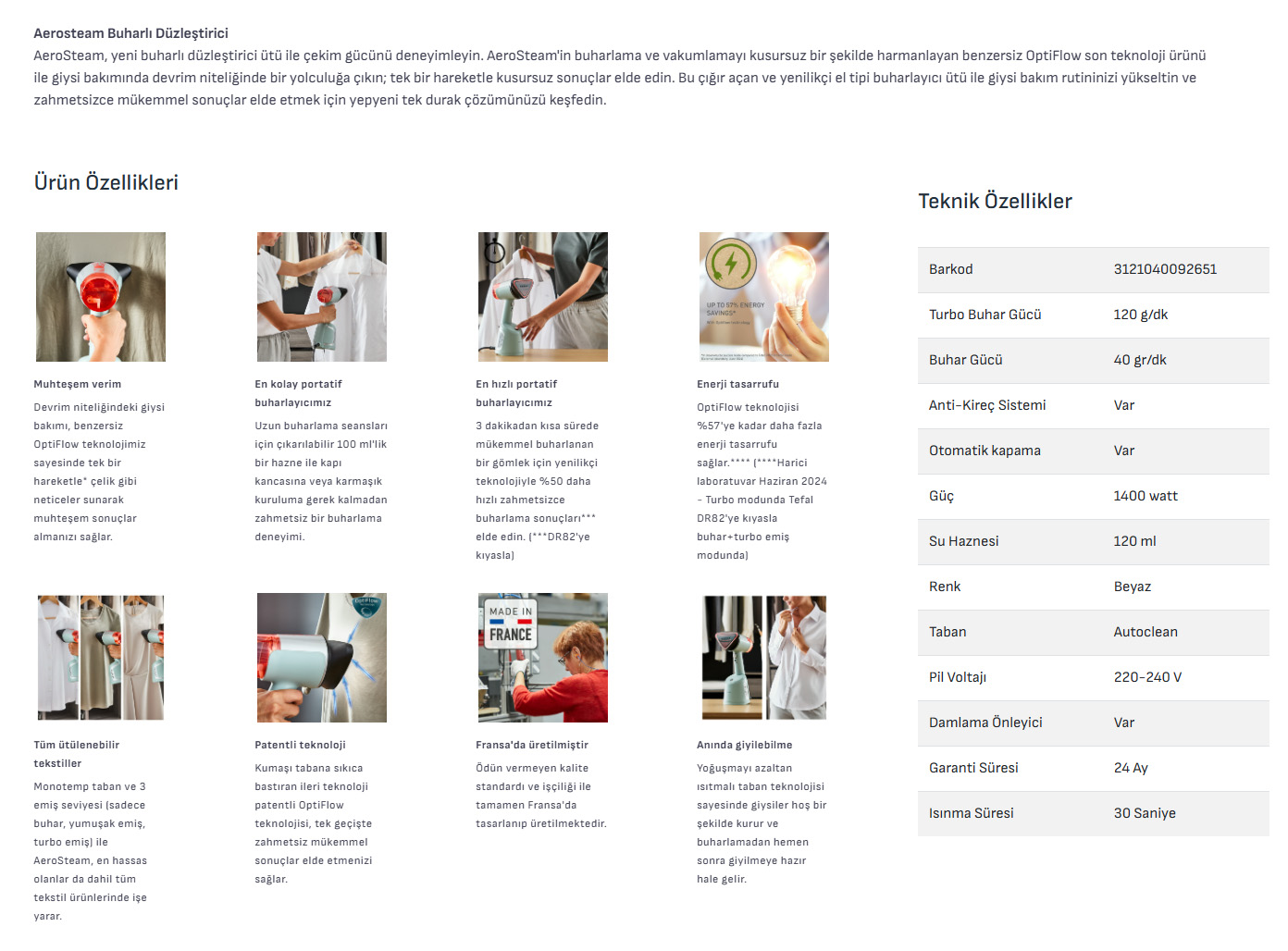 Garanti: 2 Yıl Tefal Türkiye Garantili