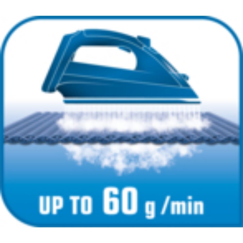 60 g/dk’lık sürekli buhar çıkışı, tüm kırışıklıkları etkili bir şekilde gidermek için ideal miktarda sabit buhar çıkışı sağlar.