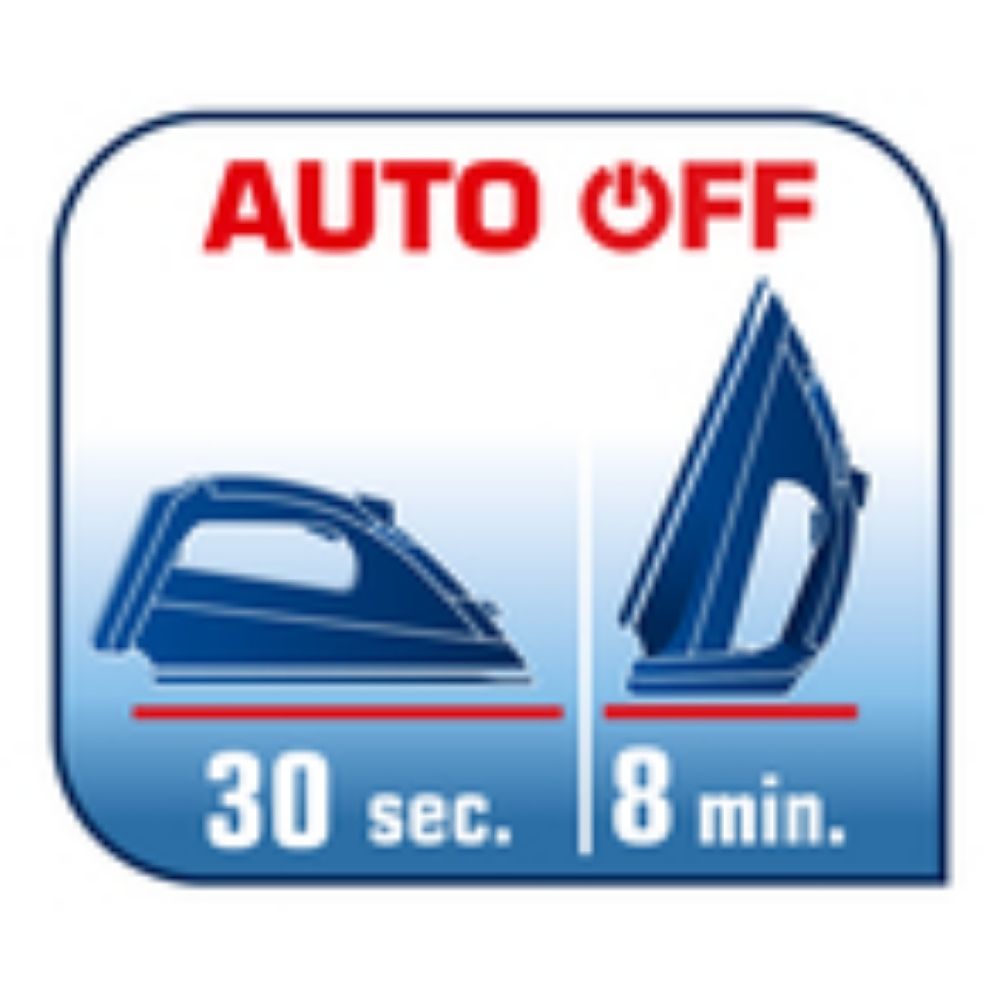 Yanlışlıkla gözetimsiz bırakıldığında ütü otomatik olarak kapanır. Dikey konumda bırakıldıysa 8 dakika sonra kapanır. Tabanı yere temas halinde ya da yan durumda bırakılmışsa yalnızca 30 saniyede kapanır.