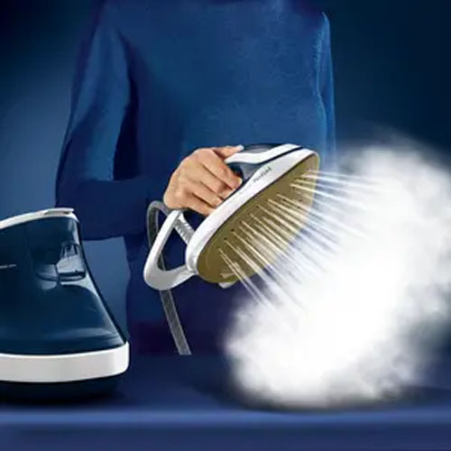 İdeal sıcaklık/buhar kombinasyonu sunan bir buhar kazanlı ütü—tüm giysi bakım ihtiyaçlarınızı gönül rahatlığıyla gidermek üzere ayar gerektirmeden tüm kumaşlar için güvenli.