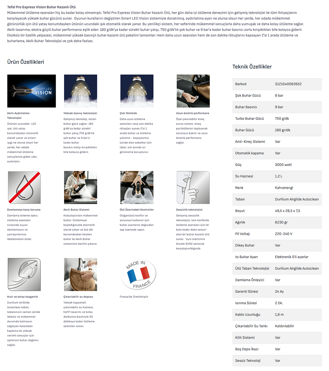 Garanti: 2 Yıl Tefal Türkiye Garantili