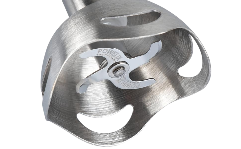 Sert malzemeleri bile karıştırmak için optimize edilmiş kesme açısına sahip paslanmaz çelik bıçaklar.