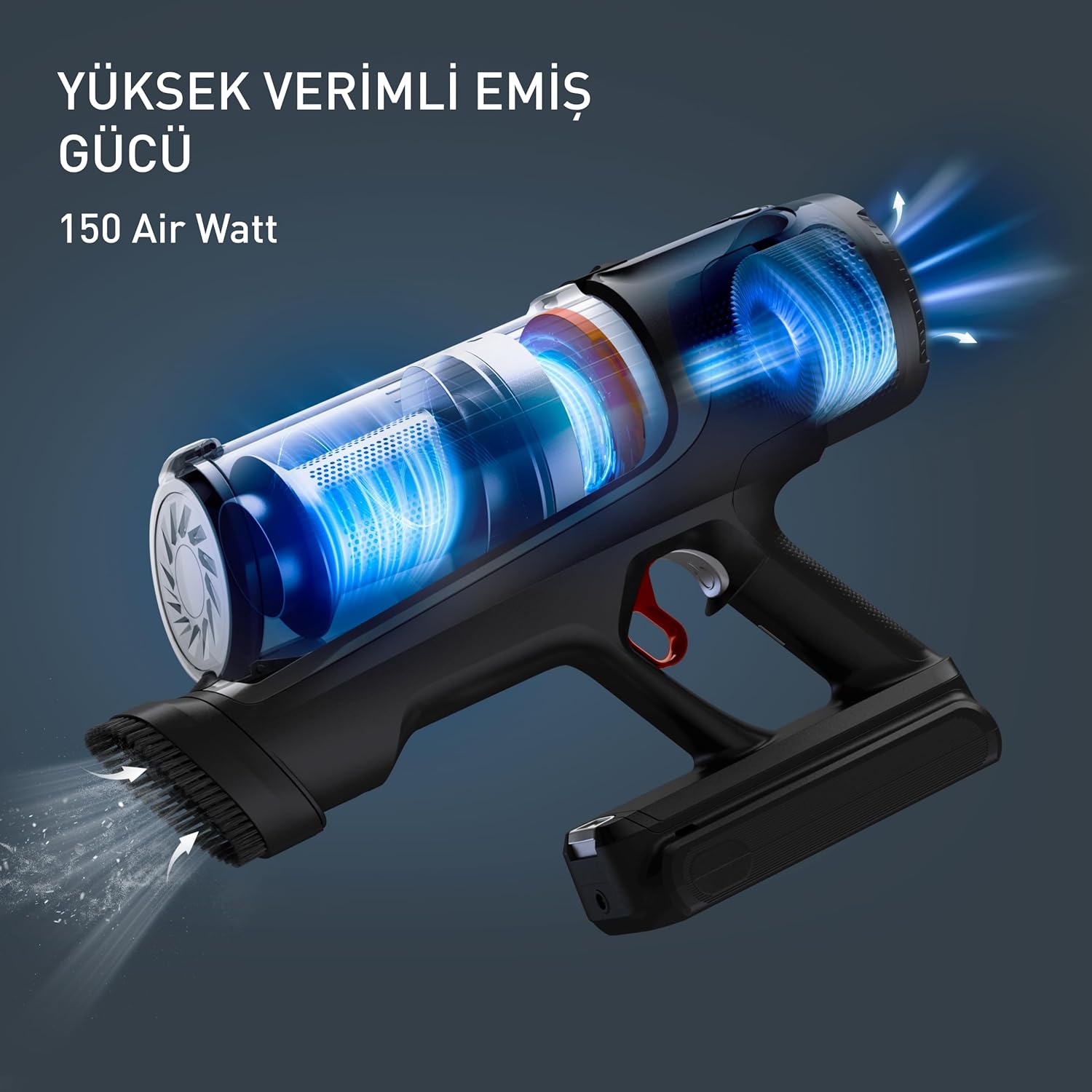Zemindeki kirler için yeni nesil fırça ve 150 Air Watt'a kadar emiş gücü ile halılar da dahil olmak üzere her türlü zeminde tam derinlemesine temizlik.