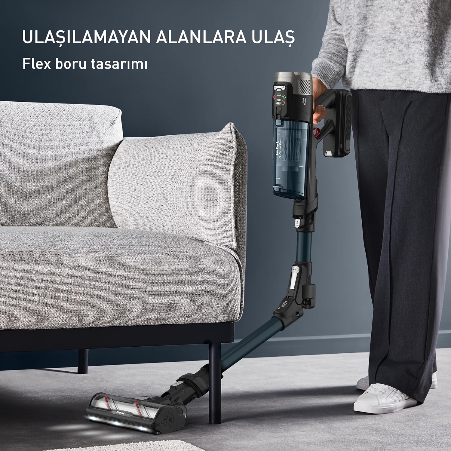 Esnek boru tasarımı, düşük aydınlatmalı alanlarda tozu takip etmek adına LED barlar sayesinde eğilmeden her yerde tam temizlik için mobilyaların derinliklerine ulaşır.