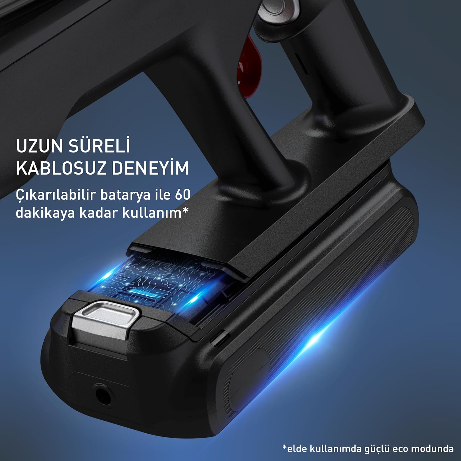 En sevdiğiniz elektrikli süpürge şimdi hızı, batarya seviyesini ve zahmetsiz bakım için akıllı filtre temizleme uyarılarını gösteren akıllı bir LED ekrana sahip.