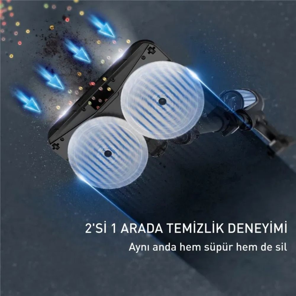 Aqua aksesuarınızla geliştirilmiş yüksek performanslı paspas aparatı sayesinde aynı anda süpürme ve paspaslama işlemi ile temizlik sürenizi yarı yarıya azaltın.