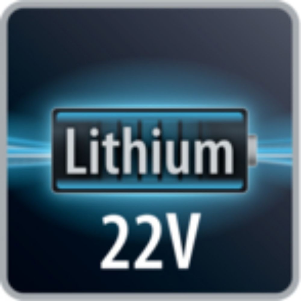 NiMH pilden iki kata kadar daha uzun süre ev temizliği için 22V'lık yüksek kaliteli lityum pil kullanılmıştır.
