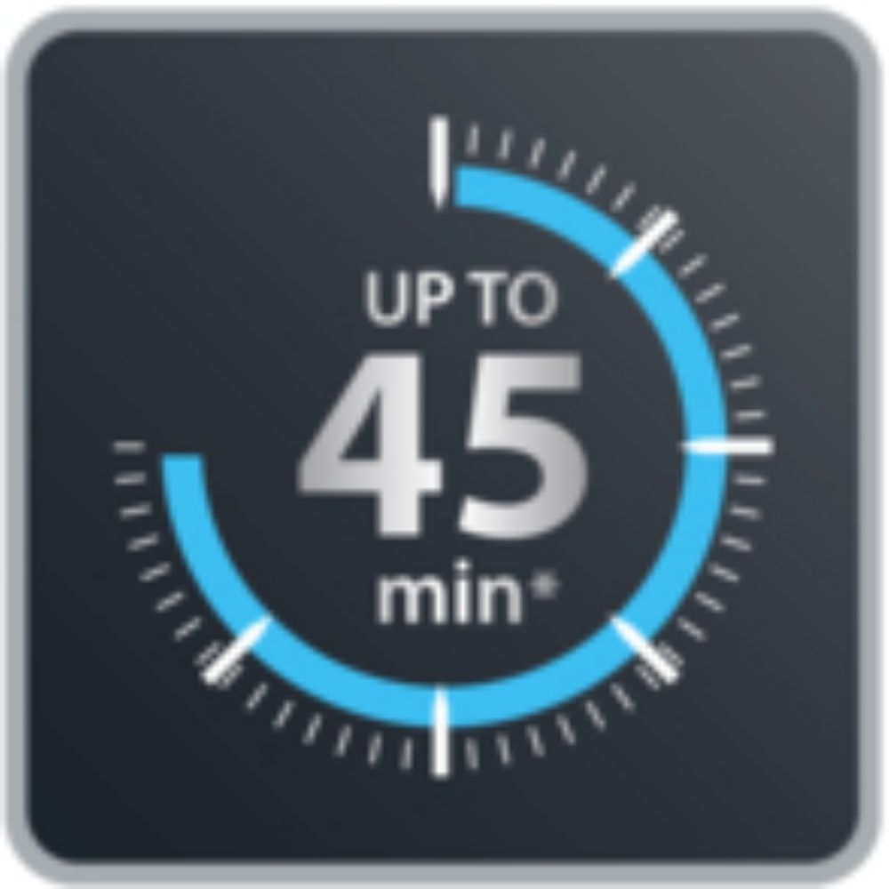 Üstün performans ile istediğiniz zaman ve yerde temizlik yapmanızı sağlayan 45 dakikaya kadar çalışma süresi *.